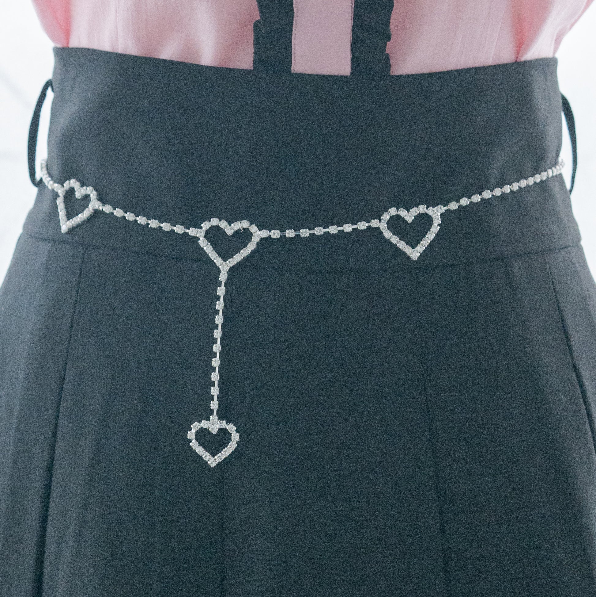 Heart shape rhinestone belt, waist chain (jirai-kei, y2k, gyaru)