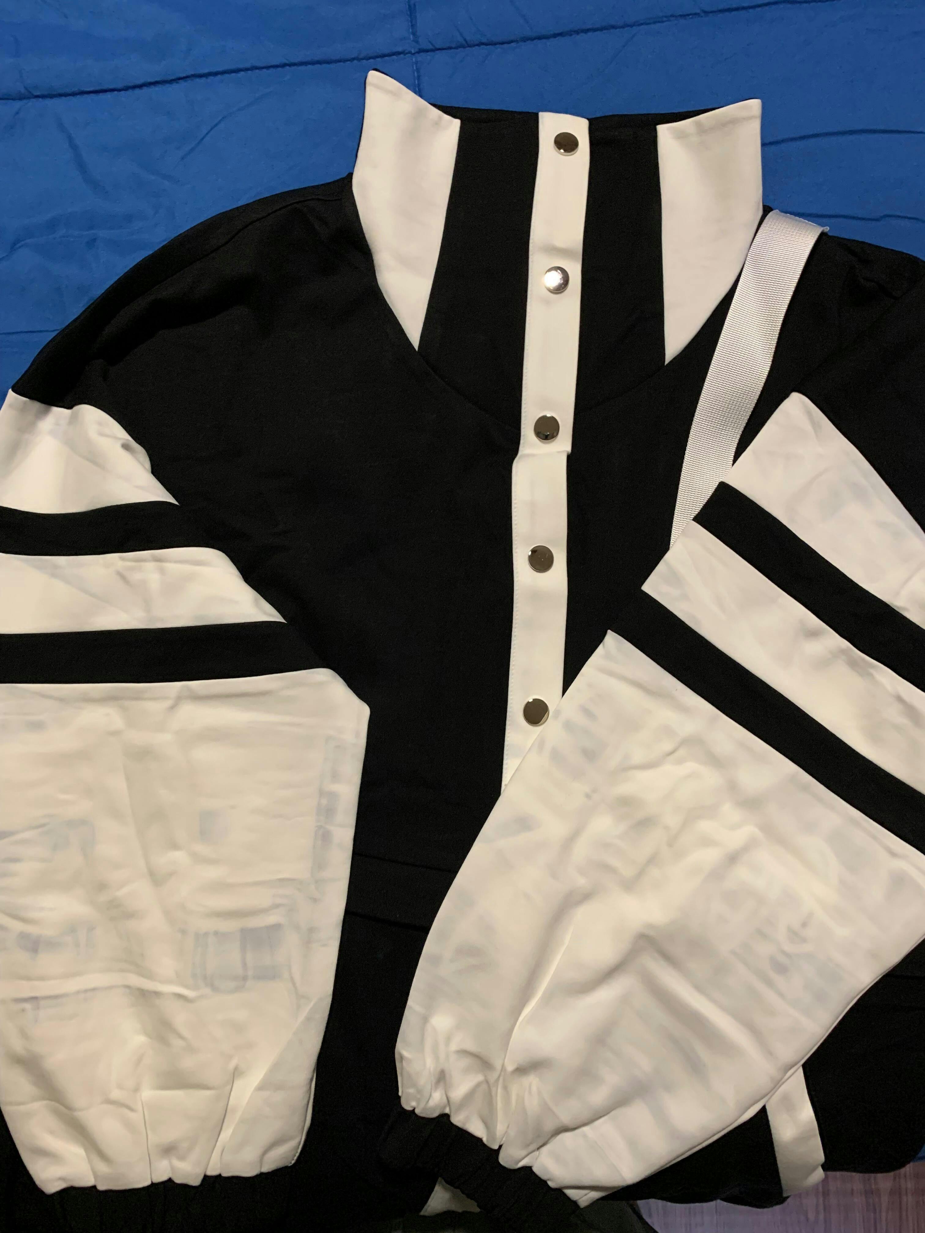Ordered the jacket in black, size 1. Was excited to receive my jacket only to find stains ALL over it from where the black had bled onto the white parts: the sleeves, buttons, bottom hem, you name it. Other than the stains, I find the fit not to be oversized at all, and I usually wear xL-2xL. I can’t imagine that it would give a very oversized look on anyone similar in size to me.